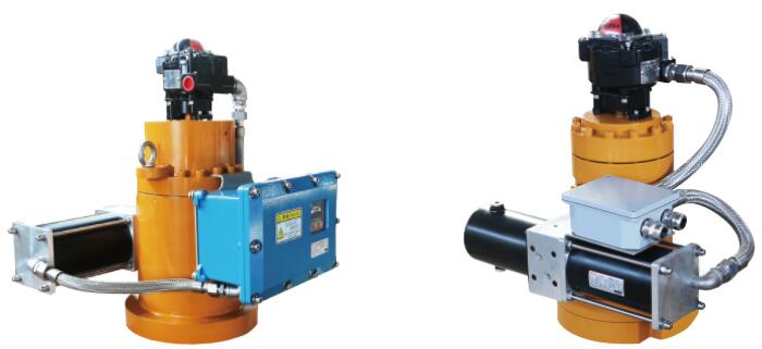 AT电液执行机构的开关由电机的正反转来控制。当阀门到达目标角度时电机停止。在电机不给电的情况下阀门将一直保持这个位置。耐压密封包装使得驱动模块能在极端恶劣的环境条件下使用,包括危险的防爆区域。通过增加附加模块可实现各种附件 功能。手动调节,安全可靠,可任意时间调节驱动头的运动速度。