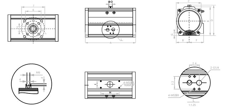 | QH125 | 340 | 155 | 120.5 | 175 | 67.5 | 70 | 27.5 | 80 | 30 | F10∅102 | F07∅70 | M10X16 | M8x13 | 22 | ∅65 | 365 | 470 | G1/4” |
