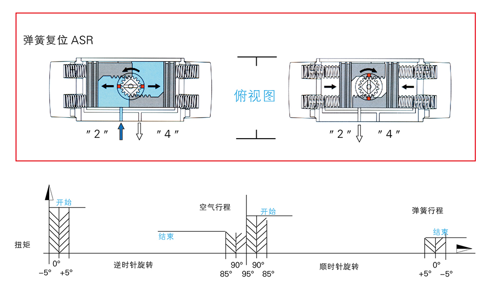 空气行程:开始:弹簧释放状态下的执行机构扭矩 结束:弹簧压缩状态下的执行机构扭矩