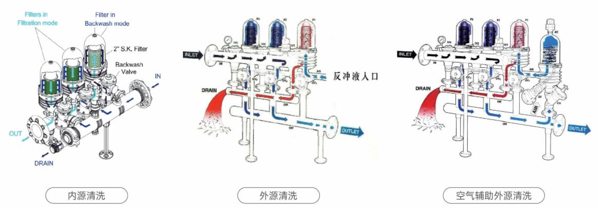 4.空气辅助外源反冲,使用4.5-6bar的空气驱动其他来源清洁液体反冲洗。